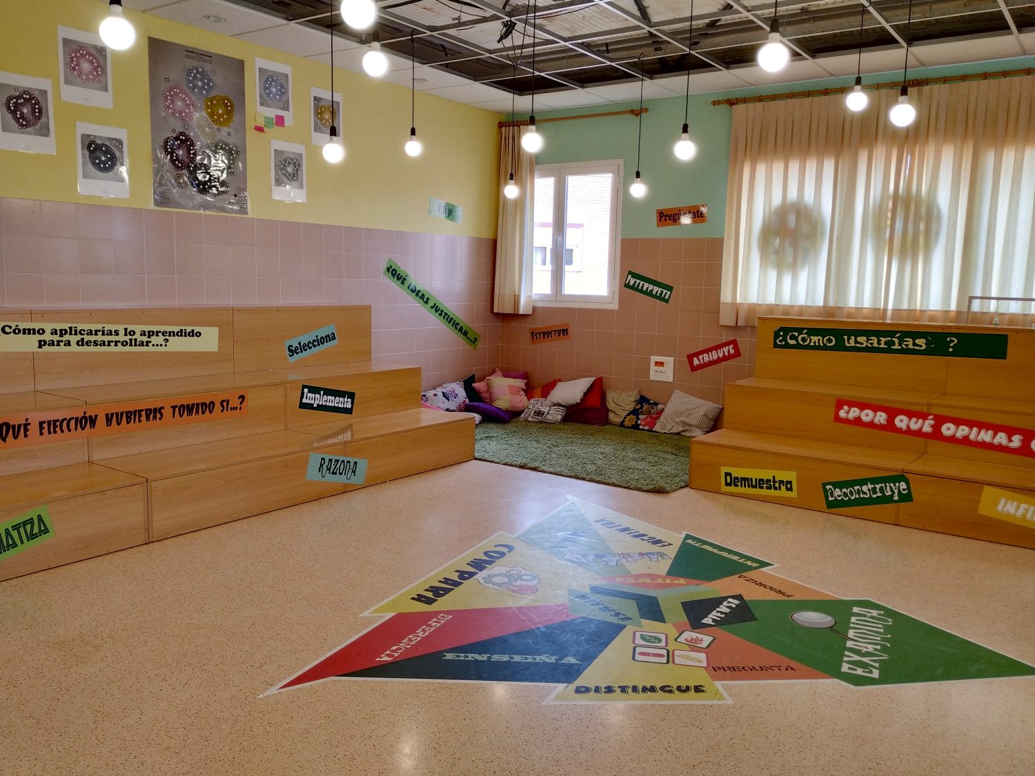 Es un aula diáfana con mobiliario movil que permite delimitar espacios si es necesario. Esto permite el trabajo tanto cooperativo como la investigación y la creación a nivel musical, artístico, danza, teatro, escultura, etc.Los pilares básicos del proyecto son: