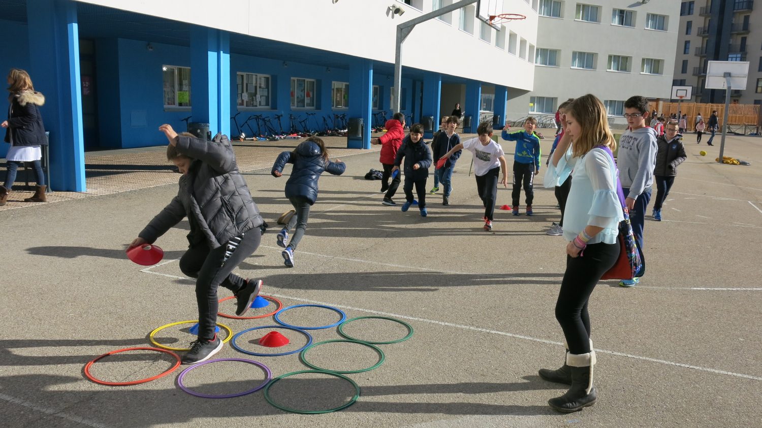 El colegio cuenta con varios espacios para el desarrollo físico del alumnado, tanto al aire libre como en el interior de las instalaciones.