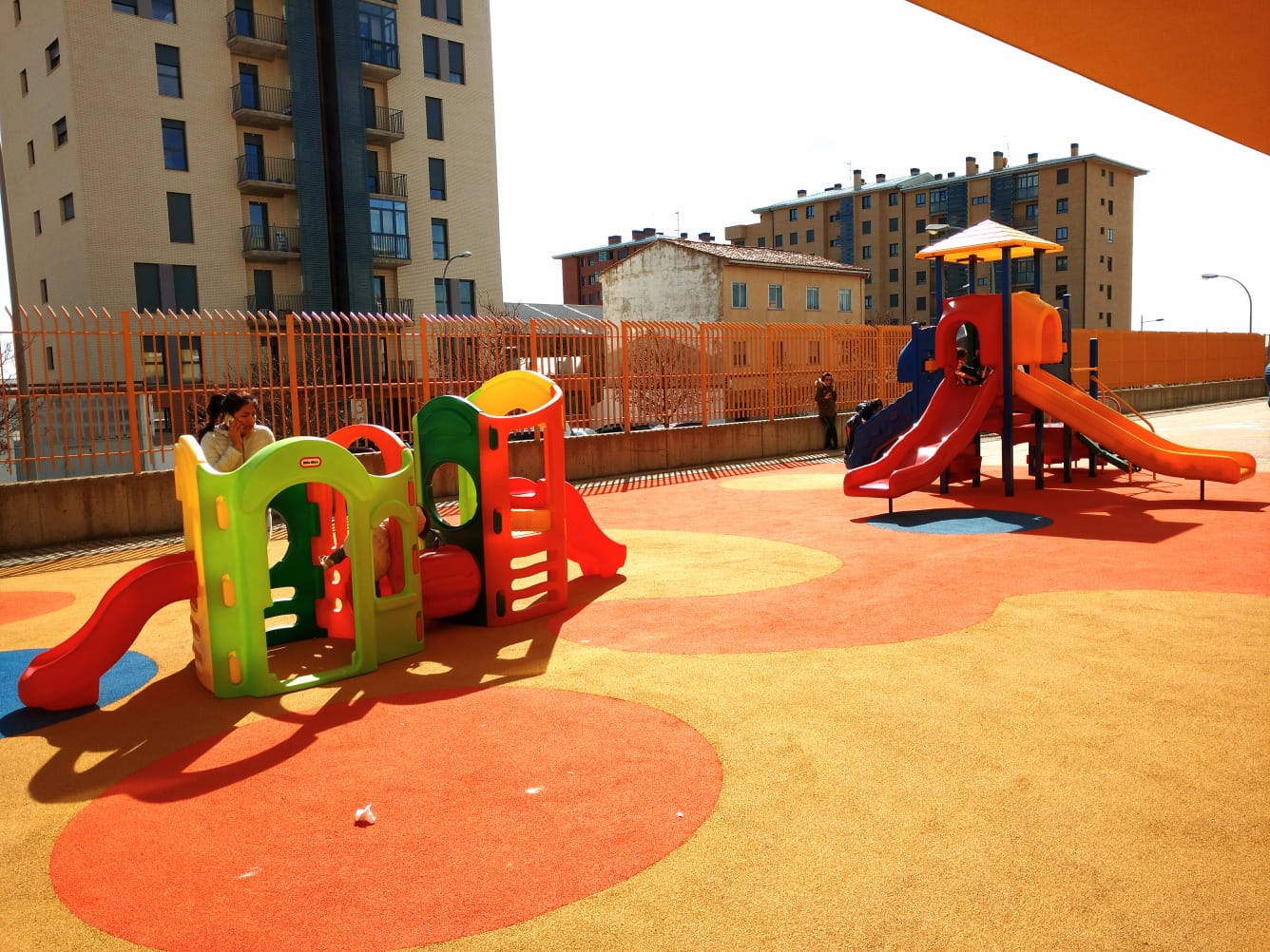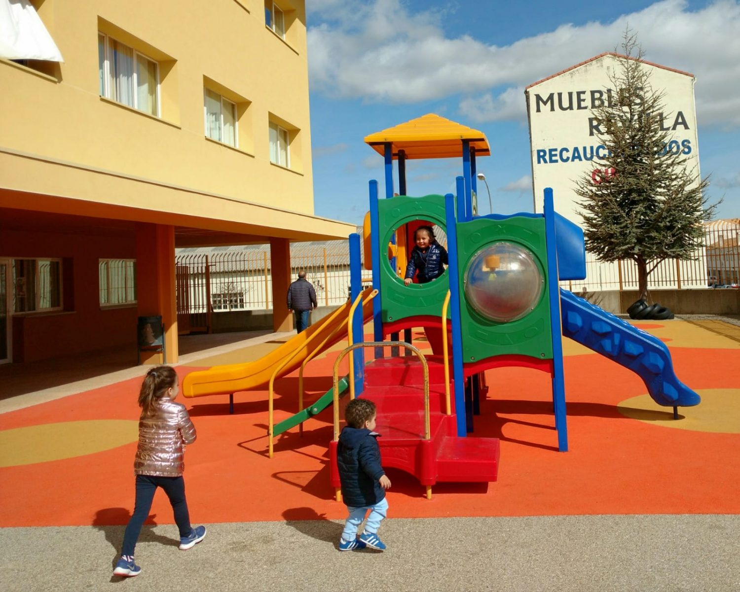 Por otro lado, independiente a estas instalaciones, y separado de ellas por una valla, el centro cuenta con un patio para los alumnos de Infantil, que tiene una zona de juegos con suelo especial para evitar lesiones en las caídas.