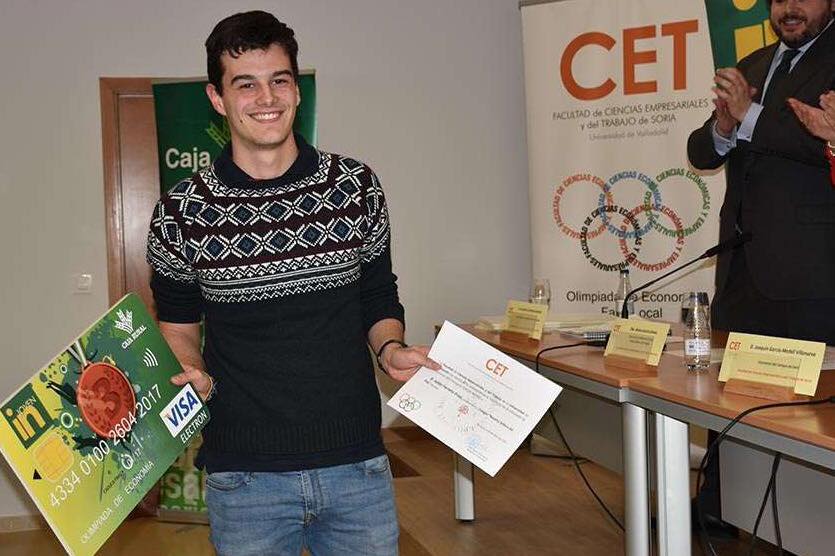 Octavo premio de la VIII edición de la Fase Local de la Olimpiada de Economía, organizada por la Facultad de Ciencias Empresariales y del Trabajo y en la que colabora la Cátedra Conocimiento e Innovación Caja Rural de Soria: Diego Arancón Yañez (2ºA de Bachillerato)