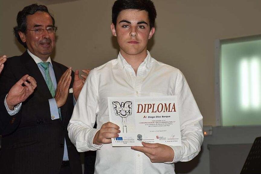 Primer premio, en la categoría de 4º de la ESO, de la XXIX Olimpiada Provincial de Matemáticas de Secundaria, organizada por el Centro de Formación del Profesorado e Innovación Educativa de Soria, junto con la Sociedad Castellana y Leonesa de Educación Matemática ‘Miguel de Guzmán’: Ernesto García Tapia (4ºA de ESO)
