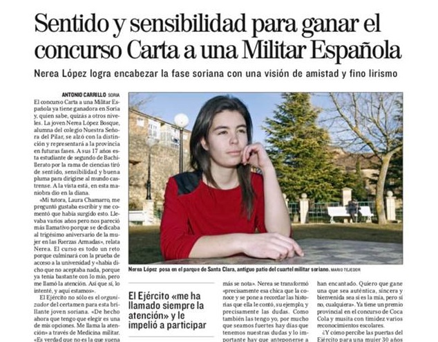 Premio Provincial de Carta a una Militar Española y tercer puesto a nivel nacional: Nerea López
