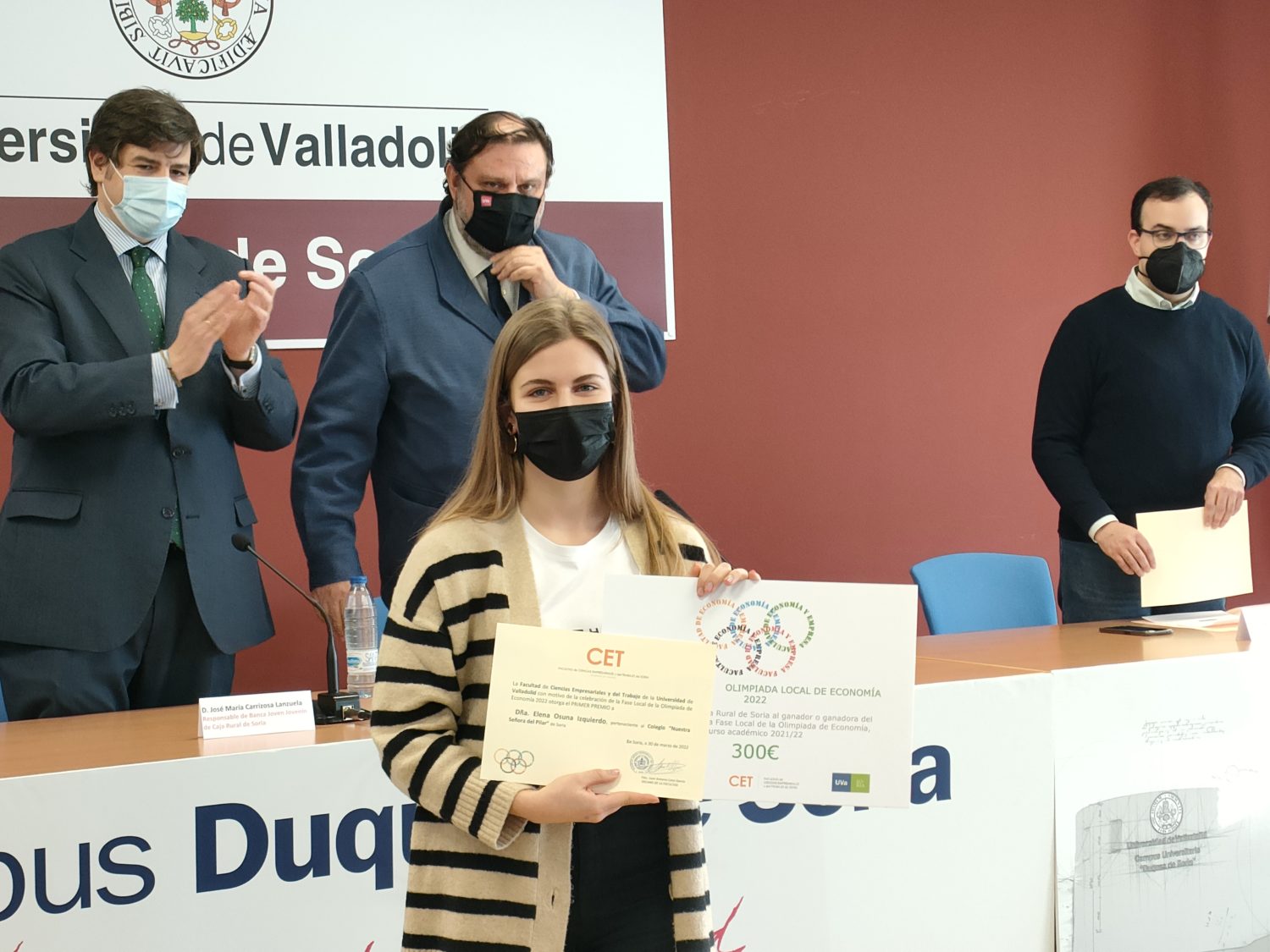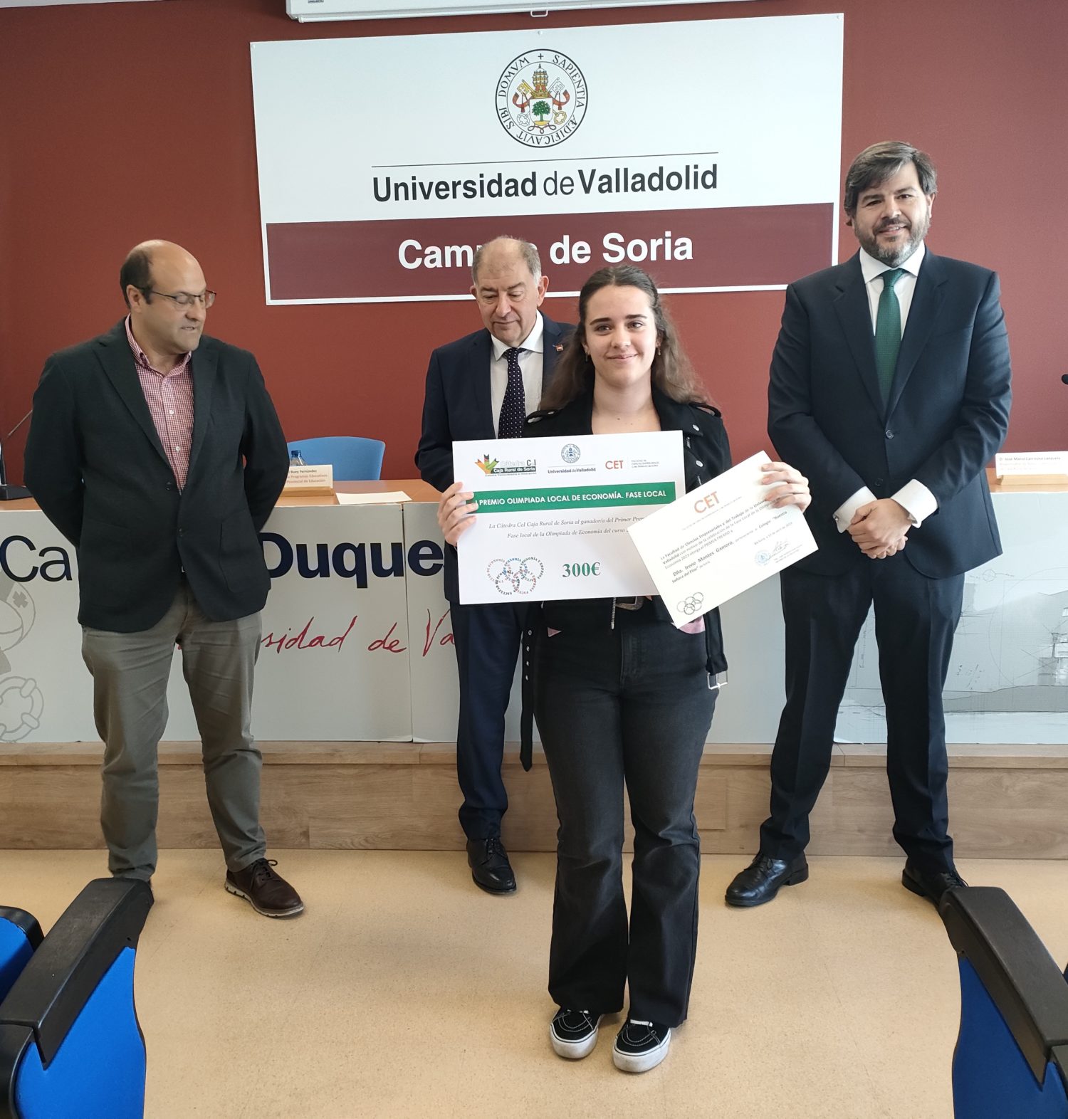 Primer premio de VII edición de la Fase Local de la Olimpiada de Economía que organiza la Facultad de Ciencias Empresariales y del Trabajo y en la que colabora la Cátedra CeI Caja Rural de Soria: Irene Montes Gamero (2º Bachillerato A)