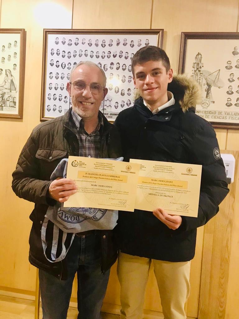 Medalla de bronce en la fase local de la Olimpiada de Física, organizada por el distrito universitario de Valladolid en colaboración con la Real Sociedad Española de Física: Marc Isern Jánez (2º Bachillerato B)