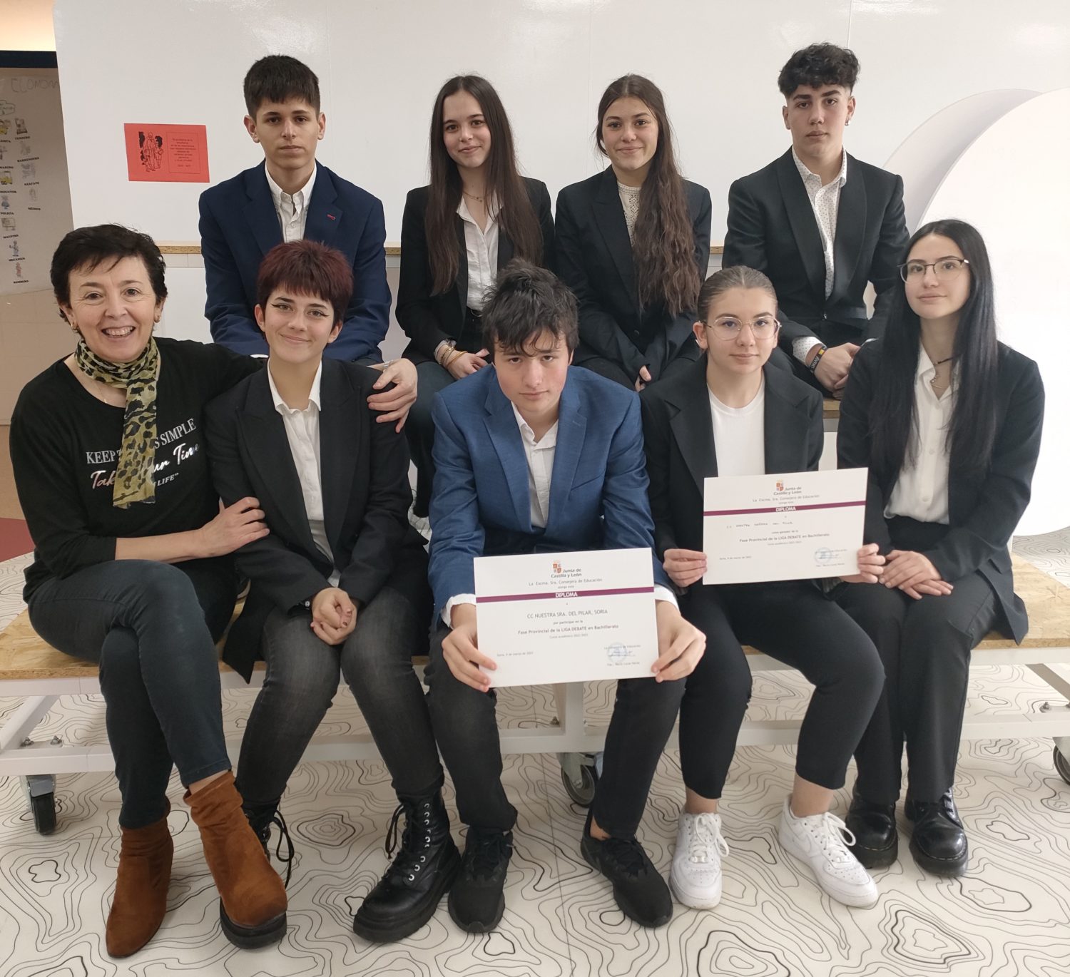 Equipo ganador, en la categoría A, de la fase provincial del programa de la Liga Debate, organizado por la Consejería de Educación de la Junta de Castilla y León: alumnos de tercero y cuarto de la ESO: Carolina Alcolea Borque, Alejandra Cabrerizo Sanz, Celia Simal Redondo, Nerea Miguel Gallardo, Elena Montes Gamero, Mario Duarte Calvo y Edith Martínez Carnicero.