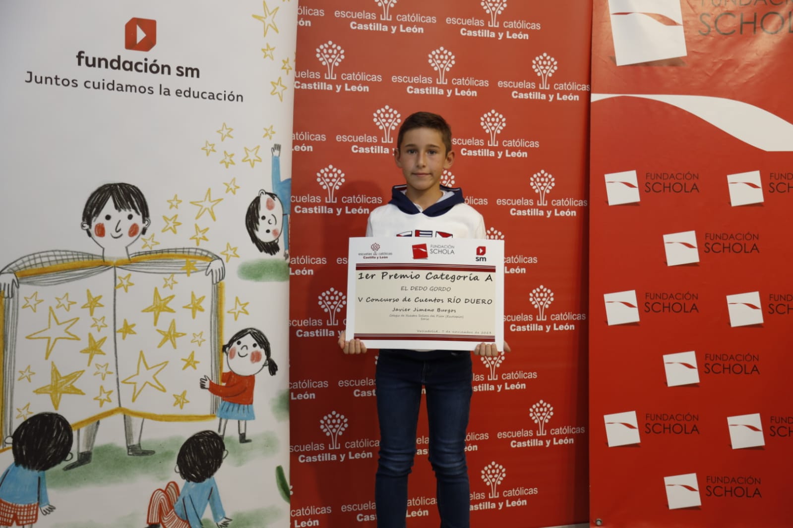 Ganadores, en la categoría A, de la V edición del Concurso de Cuentos Río Duero, organizado por Fundación Schola y Escuelas Católicas Castilla y León: Javier Jimeno Burgos (3ºB de Primaria)  y Sofía Pellicer Gil de Gómez (3ºB de Primaria)