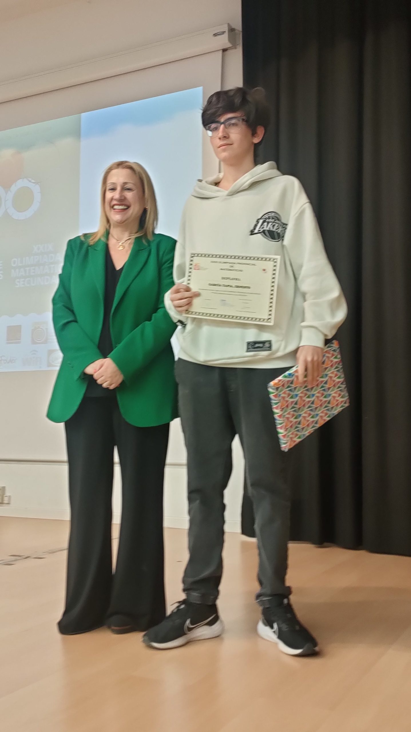 Primer premio en la XXVII edición de la Olimpiada de Matemáticas de Secundaria: Ernesto García Tapia, alumno de 2º de la ESO.